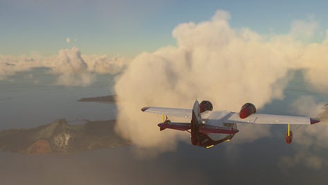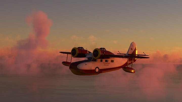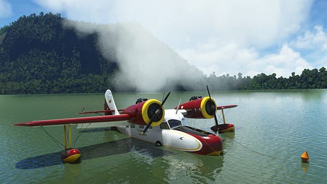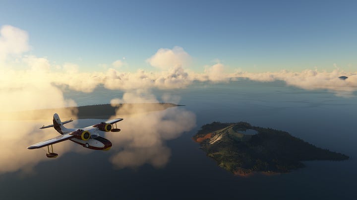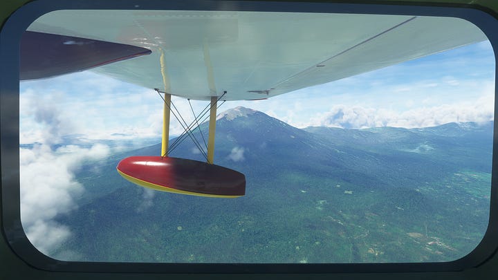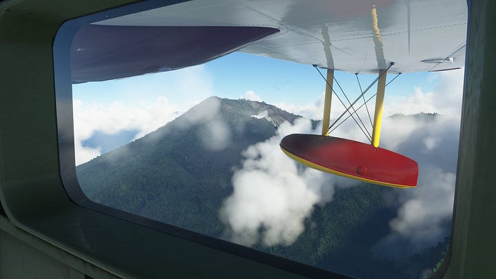 We’ve conquered the beast! Now that we’re on the home stretch, it’s time for some reflection on the trek. And I ain’t talkin’ about those crystal clear lake waters! Not only had we seen Krakatoa, the destructive monster of near legend, but also got to see some gorgeous sights along the way, including the dormant caldera of an even more powerful eruption! And I certainly couldn’t have planned an impromptu splashdown on a lake with a view of the country’s highest volcano! No way do I have that kind of foresight! That’s just part of why the Grumman Goose is so fun to fly, you can literally go anywhere if you have the skill (and maybe also the recklessness to land on a lake that might be too small to take off from) but it also has a nice steady ride that means you aren’t constantly wrestling for control, even without using the gyropilot. Plus there’s something about that old-school 1930s design that you really don’t see anymore, and I just love it.