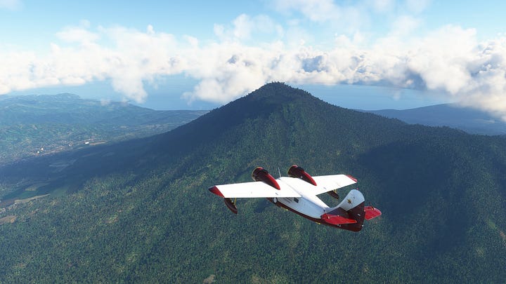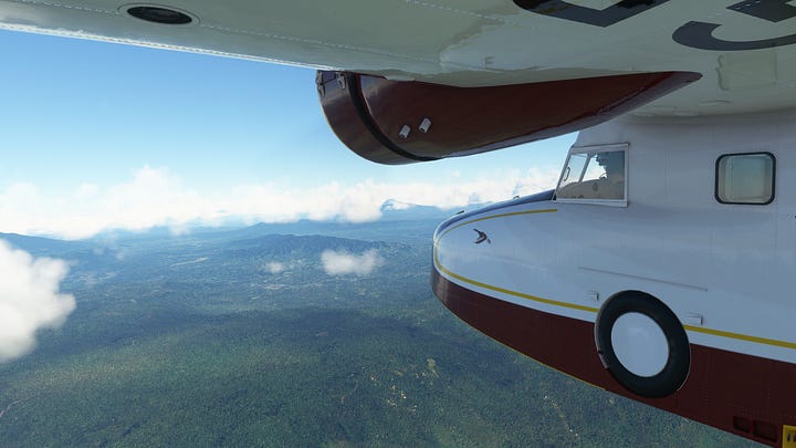 Padang had treated us well for the last few days, or at least it would have if we were actually there. The Goose got a slick new paintjob, (read: I found the website to download community-made aircraft liveries) we were fully fueled up, and it was time to see some more volcanoes, baby! With just the right amount of clouds in the sky, we set off to the south-east, again following the Barisan Mountains towards the highest peak in the mountain chain, Mt. Kerinci.
